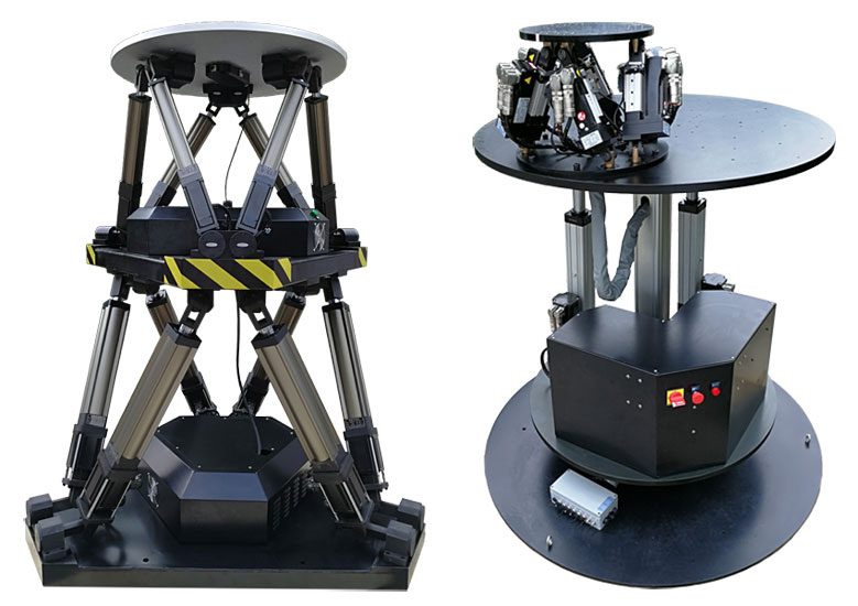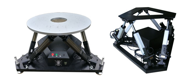 可實現(xiàn)橫搖、縱傾、偏航三個角度姿態(tài)及橫移、前移、升降三個位移,主動控制平臺,或穩(wěn)定平臺,多用于仿真模擬測試、姿態(tài)復(fù)現(xiàn); It can achieve three displacement of three angles: roll, pitch and yaw. The active control platform or stable platform is mostly used for simulation test and posture reappearance