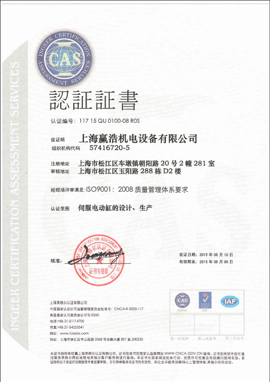 定制電缸-新聞中心自始至終,上海贏浩機(jī)電設(shè)備有限公司 都致力于尋求建立完整、完善的質(zhì)量管理體系。從一開始,我們就努力規(guī)范公司的管理要求。我們從最基本的的意向溝通、設(shè)計(jì)圖紙、加工生產(chǎn)、組裝調(diào)試、發(fā)貨售后 出發(fā),不放過(guò)任意一個(gè)基本節(jié)點(diǎn),力求做好各個(gè)環(huán)節(jié)的質(zhì)量,以保證整體產(chǎn)品的質(zhì)量。經(jīng)過(guò)半年多的認(rèn)真學(xué)習(xí),我們順利通過(guò)ISO9001:2008質(zhì)量管理體系認(rèn)證,爭(zhēng)取做出更出色的產(chǎn)品。贏浩的明天更精彩。