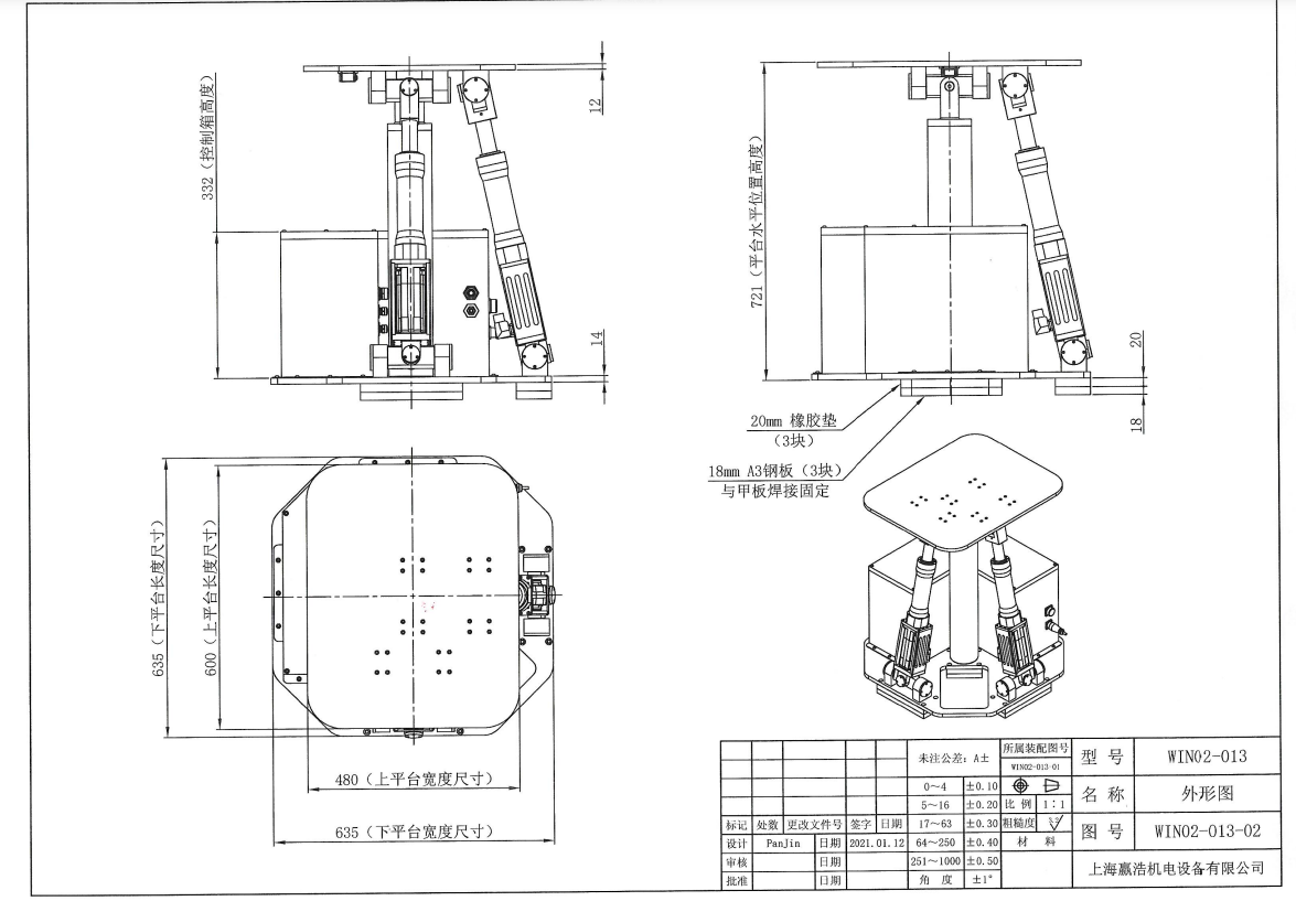 (5)平臺(tái)總重:160kg(其中控制箱重量:25kg) |