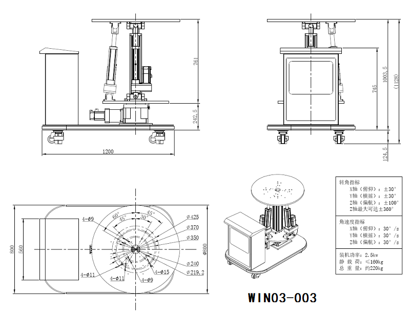WINHOO產(chǎn)品介紹三自由度運動平臺/橫搖、縱傾、偏航