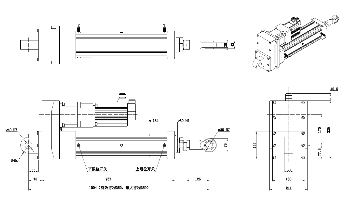 技術(shù)資料SDG125-002折返式電動缸,負(fù)載38KN 額定速度67mm/s 歡迎來電咨詢021-67735848 15900758649