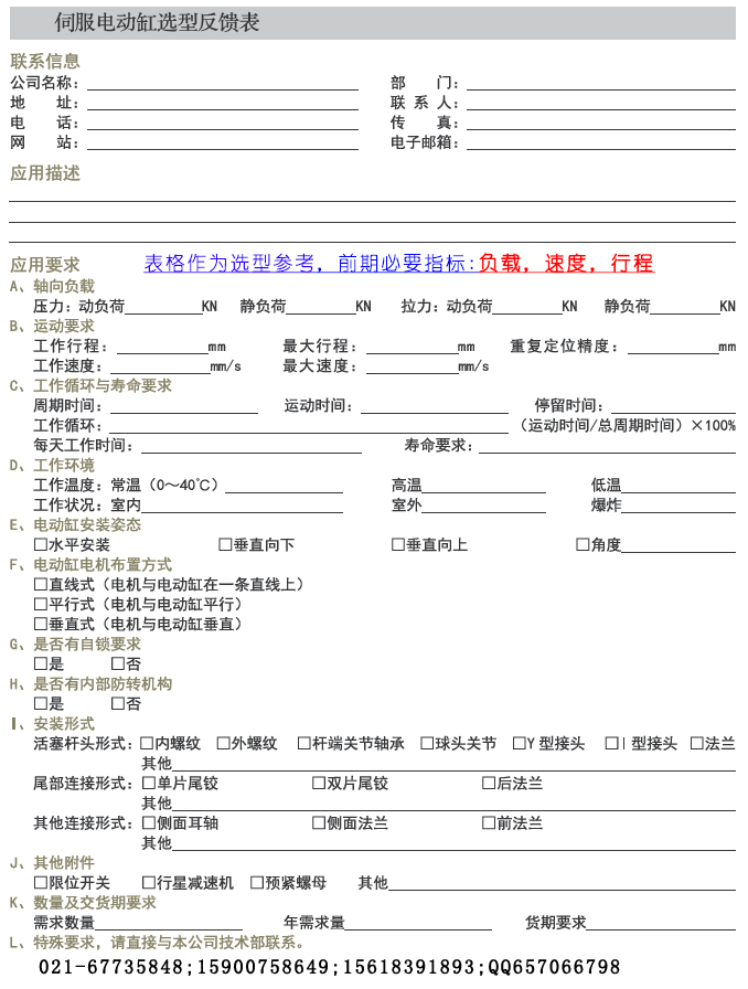 技術(shù)資料如下圖:是我公司針對(duì)電動(dòng)缸選型需要考慮的因素,制定的詳細(xì)選型技術(shù)表,比較全面。
